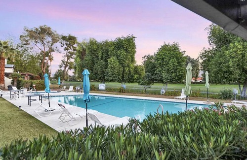 Located in the popular South Palm Springs, on the golf course, with 2 tennis courts and 3 community pools and jacuzzis, always heated, one of which is just outside of your front patio - this gorgeous and spacious 3 bedroom home is your dream getaway. We converted the 3 bedroom into the extension of the living room, making the home a great fit for 4 to 6 people. Two bedrooms with 2 king size beds, the den with the sofa that can be a comfortable single bed, and so does the living room.