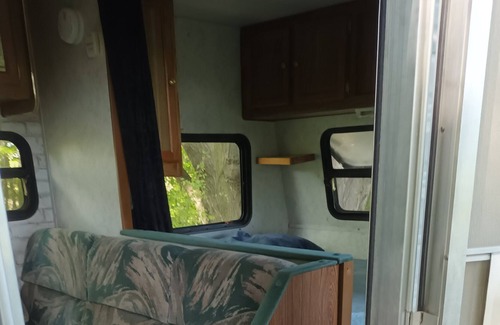 This small 22' RV offers a private place to get away.. It's 25 years old and not in mint condition, but it's clean and everything works. We offer a move-in ready suite that has a fully equipped kitchen, WIFI, BBQ, independent AC/Furnace controls, TV with Firestick.