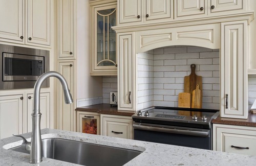 The lower level is a retreat of its own, featuring two luxurious King suites with private en-suite bathrooms. Floor-to-ceiling sliding glass doors frame breathtaking lake vistas, leading out to a serene patio where you can lounge in the fresh air. The downstairs living room, complete with a second large screen TV with,satellite service, third coffeemaker, and beverage fridge, is the perfect spot for movie nights, playing cards, or quiet moments of relaxation.
