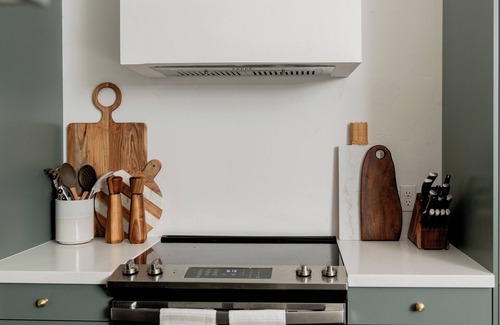 Modern, fully equipped, includes microwave, toaster and new SS appliance suite as well as quartz counters. We stock some basic items for you such as coffee, salt, pepper, paper towels, sponges & dish soap & etc. There is both a Keurig and a drip coffee maker for your preference!