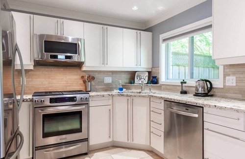 The property is 3-story end-unit townhouse near downtown London and Victoria Park available for various durations of stay. The home was recently redone and offers high-quality appliances, tile and cushioned carpet floors, marble countertops, clean lines, in luxury accommodations.