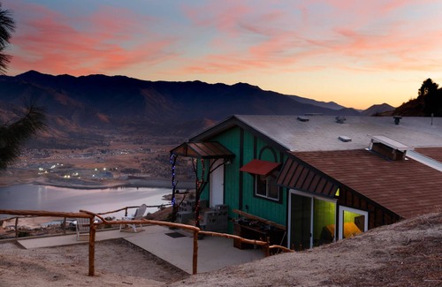 The lake View is spectacular. the home is way up on a mountainside . You have a 2 person Hot tub, dry sauna in the master bedroom. . Day room, large padded floor Great for yoga, has a large gas barbecue, level 2 car charger, if using -50 $ charge if booking moor then 2 nights. Full kitchen. Short private trail.. 10 minute drive from the lake, up a winding, steep, narrow, well paved road. Then 1/2 mile of dirt road. Good shape. Hiking ,fishing ,rafting ,Hot Springs all minutes away up here in the Sequoia national Forest.