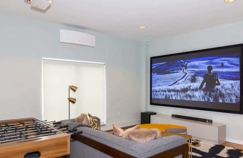 Designed by a renowned architect, and tastefully furnished by a leading interior designer, this award-winning home is built for gathering, while still allowing guests ample privacy. Sleeping quarters for the main house include: a master suite on the main level, with a king bed; a study/bedroom with a full-size sofa bed on the main level; and 3 bedrooms on the garden level with queen beds. Each bedroom has its own, en-suite bathroom. The large common spaces in the main house include a great room with kitchen, living, and dining spaces; a playroom/movie room on the garden level with 4K projection; and many nooks for quiet contemplation. The bedrooms and great room feature brand-new, energy-efficient mini-split air conditioning units, which can be controlled individually and set for your comfort. In winter, warm up by the towering stone-clad fireplace after a day skiing at Catamount (an 8-minute drive), or tubing and sledding on the hills that surround the house. Year-round, you'll enjoy ample space and spectacular, panoramic views from the grand, triple-height Great Room.