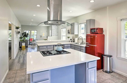 Located in the heart of LA, in the growing artisan neighborhood of Silver Lake, this modern vacation rental is the ultimate pad for an immersive Los Angeles experience. The 2-bedroom, 1-bathroom Craftsman-style home offers a unique getaway, with original artwork from local LA artists throughout the interior, to produce a thought-provoking and creative ambiance. You and your crew can enjoy a prime location near Hollywood sightseeing, plus Sunset Junction and Vigil Village are within a short walk.