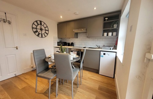 The brand-new kitchen is modern and fully equipped, designed to make cooking and dining a pleasure. With an oven, hob, fridge/freezer, microwave, kettle, toaster, and all essential cookware and utensils, you can easily prepare meals whether you’re grabbing a quick breakfast before work or cooking a relaxed evening dinner. A small dining area ensures mealtimes are comfortable and convenient.