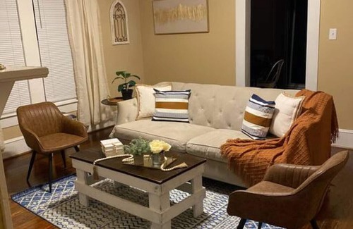 Unwind at this charmingly historic home that has plenty of room and comfort for up to 6. Enjoy peaceful evenings with your family and friends in the fenced-in backyard with a deck for outdoor dining. Located in the heart of downtown Concord, this home is just minutes away from the Atrium hospital, the Concord Greenway and other attractions the city has to offer. Plus, free parking for up to 4 vehicles ensures hassle-free visits. Feel at home in the one queen bed, one full bed and two twin fits that are provided. Pets are also welcome—additional fees apply and breed restrictions enforced.