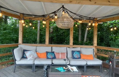 Escape to this lovely apartment in picturesque Lawrenceville. This charming property offers a cozy retreat for guests. With 2 bedrooms, including a king bed and a full bed, it provides a comfortable space to unwind. The bathroom features a shower and a hair dryer for your convenience. In addition, there is an inviting living room with a sofa bed, perfect for relaxation. Stay connected with WIFI throughout your stay. We think our place will help you experience everything Lawrenceville has to offer. Lay out by the pool or relax in the gazebo. Catch the sunset in this beautiful outdoor oasis in the backyard. Inside the apartment, there is a kitchenette with refrigerator/freezer, coffee maker, air fryer, and microwave. There is also a separate dining area. Outdoors, there is a gas grill on the pool deck. Just 1.2 miles from the heart of Historic Downtown Lawrenceville.