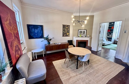 The historic DC row home is perfect for families and small groups looking for a vacation (or longer term) rental in the heart of Washington. Your accommodations are less than 1 mile from the White House and a short walk from the bars and eateries of 14th Street NW. Parking is available ($14.50 per night) though you shouldn't need to drive in our safe and walkable neighborhood. Please be aware that this grande dame is a work in progress, and not all rooms have been updated. The kitchen for example is functional but dated and some rooms have cosmetic issues such as damaged paint. If this doesn't bother you - welcome! If you are looking for this scale of accommodations in our neighborhood, in immaculate updated condition - swipe left. Please note also that this is not a party house. Strict no events / no parties policy is required out of respect for our neighbors. Unauthorized parties will be shut down hopefully before our neighbors call the police.