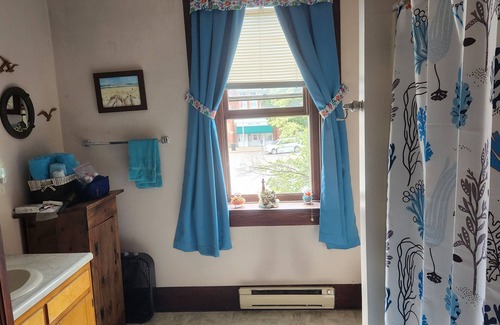 Imagine staying in a building built in the 1850s and finished while Lincoln was president. Spacious one bedroom apartment with an office just steps from everything. Directly across the Square from the Opera House and across the street from the Courthouse. Second floor (walk-up) apartment offers great views. The Locks of Love Sculpture is directly in front of the apartment. Fully equipped kitchen allows you to eat in, but multiple restaurants are steps away. The Old Bridge Brewery is just a few blocks down toward the river along with the "world's smallest" Kroger Grocery store. Come and fall in love with a small village!