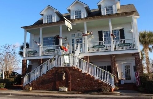 This 3rd floor, beautifully furnished 2BR, 1.5 bath apartment, conveniently located in Historic Downtown Swansboro, will have you Hook, Wine & Sinker as soon as you walk in. Perched atop Bake Bottle Brew, a great Wine/Gift shop, this 1200 sq foot apartment will amaze you with its gorgeous hardwood floors, beadboard walls and ceilings, and custom kitchen. The enclosed sunroom offers breathtaking sunrise and sunset views over the Intracoastal Waterway and White Oak River. The spacious master bathroom has a cozy jacuzzi tub to relax in after a day at the beach. If you enjoy cooking while on vacation you will be pleased with the custom kitchen which is fully stocked with dishes, glassware, utensils and all the small appliances you need.
