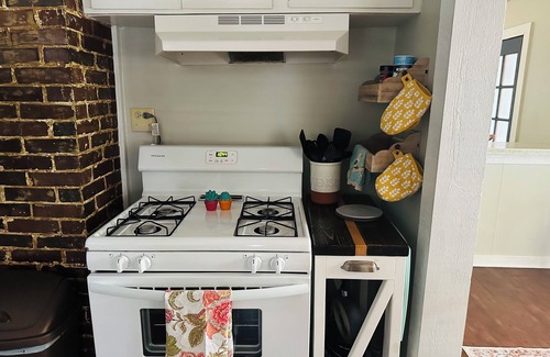 This charming, quaint cottage contains two bedrooms, one bathroom, a living room space, a work/office space, a small kitchen and dining area, an enclosed porch (perfect for keeping bikes), a laundry area, and ample-sized front yard and back yard.