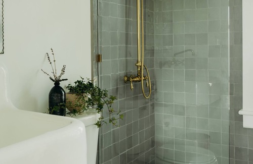 Sleeping 8 guests, our 4500sf spacious farmhouse has plenty to offer. A spacious kitchen suited with a Smeg fridge and beverage cooler, gas stove, farmhouse sink and all the cooking utensils, spices and equipment you need to prepare a home cooked meal. Enjoy that meal with friends and family around our dining room harvest table surrounded by the original 1800s stained glass windows. We have two separate common areas, one for Netflix and chill, another for deep convos and moody lighting. Upstairs, get a restful sleep in our Hammuq beds and so-soft Benjamin sheets - 3 queens and 1 king. One bathroom on either floor each with a porcelain throne, rainfall showers, and cozy towels. The upstairs bathroom is equipped with the home's original clawfoot tub, looking outdoors upon acres of farm fields.