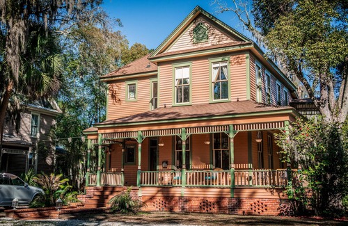1905 Victorian house includes 4 sleeping rooms, accommodates up to 8 guests. Master on main floor, with 3 bedrooms upstairs. Full bath on each floor. Full kitchen. Wrap-around porch with views of Halifax Square. Short walk (.4 mi) to Brunswick's downtown. Easy access to St. Simon's Island or Jekyll Island.
