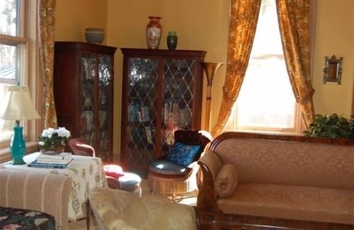 Rooms feature luminous colors and period carpets, wallpapers, and curtains. Art covers the walls, as it did in the 1890s. Musical guests love playing the c.1890 ebonized Knabe piano in the handsome 1st-floor hall.