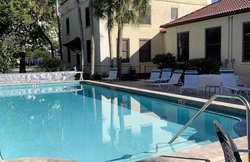 Historic KMI Building - Condo, Park & Street View is located in Venice. Historic KMI Building - Condo, Park & Street View provides accommodation, featuring Bedding/Linens, Pool, TV, among other amenities. This Condo features Bedding/Linens, Pool, TV, to make your stay a comfortable one.
