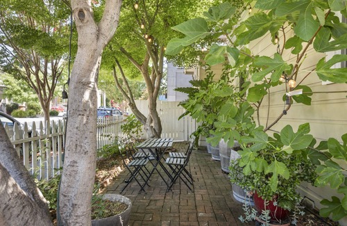Picturesque light-filled living area with Big Screen TV, cable plus streaming. Two darling bedrooms with pillow top mattresses, comfy quilted bedding, and soft lighting. Hardwood floors throughout. Spacious dining area with lots of natural lighting, the well-equipped kitchen comes with cookware and dishware ~ enjoy summer evenings & al fresco dining on the outdoor patio with a BBQ grill under large oak trees near gorgeous roses and vining flowers. The perfect setting for relaxing with friends or a glass of wine and a book!