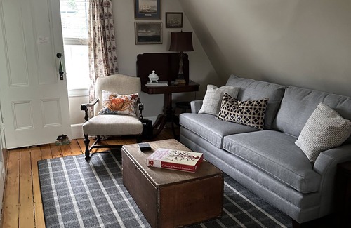 Third floor walk up, one bedroom with private bath and full kitchen located in a charming 1764 home.