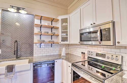 Find an Ozark Mountain getaway nestled between 2 sprawling lakes at this 2-bedroom, 2-bathroom home. Situated on a large, tree-shaded corner lot, this 1914 Mountain Home vacation rental sports beautiful antiques, en-suite bathrooms in both bedrooms, and proximity to downtown attractions. Walk across the street to the farmer’s market on Saturdays, grab drinks at Rapp’s Barren Brewing Company, or drive over to either Norfork Lake or Bull Shoals Lake for a day on the water enjoying the sunshine.