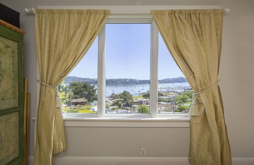 This historic turn of the century home is in the sunny "banana belt" of Sausalito. There are full waterfront views from almost every room. The location is a short walk to numerous excellent restaurants and nightlife. This Sausalito two bedroom, one bath home has beautiful furnishings with mermaid fountain and sconces and it boasts of charming character. Enjoy the sunrise and sunset on the deck overlooking hundreds of sailboats. Prepare meals in the large kitchen with a view and dine in a formal parlor room. Relax reading a book in a special nook overlooking Sausalito. End your day sleeping in large master bedroom looking at the city lights and the changing colors of the bay. Views like this require some exercise as there are steps up to the home. Master bedroom includes a Cal King bed and the second bedroom has a full size bed. The reading nook has a full bed too. This home sleeps 4 to 5 guests. It is simply magical. Please call the owner to discuss your stay. We are more than happy to assist with any questions you may have. my Cell # 415-259-8612. Due to local laws, there is a 30 day minimum. For that reason I try to work my calendar so I don"t have gaps I am not allowed to rent. I frequently have guests staying as long as 3 or 4 months. That is already reflecting in the pricing since there is not a concept of daily rates in Sausalito.
