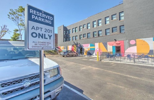Getting around downtown Memphis is a breeze. Many attractions like Beale Street, the Orpheum Theater, and FedEx Forum are within walking distance. Hop on the trolley right outside your door, rent a Bird e-scooter or Explore e-bike across the street, grab an Uber or Lyft, or take a ride on one of the horse-drawn carriages that pass by regularly. For longer trips, the airport is just a 15-minute ride. Your dedicated parking space makes driving easy, and restaurants, cafes, and grocery stores are all close by for added convenience.