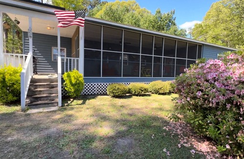 Discover this peaceful retreat that sleeps 6-8 guests and has 1.5 baths for added convenience. Your stay promises relaxation and ease. Nestled in a serene setting, this property offers the perfect blend of comfort and charm. If boating is on your agenda, we are conveniently located near several public access ramps. Our unique home is a beautifully modified mobile home that stands out with its thoughtful expansions and additions, designed with your comfort in mind. Step inside and discover a spacious living room expansion where you can unwind and relax. The interior is designed to make you feel right at home, with all the amenities you need for a comfortable stay. Each of the four bedrooms is furnished to provide a restful night’s sleep, ensuring you wake up refreshed and ready to explore. One of the home’s highlights is the screened-in porch—a serene haven where you can enjoy the gentle breezes without the bother of bugs. It’s the perfect spot for morning coffees, evening chats, or simply soaking in the tranquility of your surroundings. A fenced in backyard will keep your pets comfortable and allow them to roam freely. Our home is more than just a place to stay; it’s a place where memories are made. Whether you’re looking for a peaceful retreat or a comfortable base to return to after a day of adventure, our property is the ideal choice for those seeking something truly special. We’ve taken great care to ensure that every aspect of your stay is enjoyable and comfortable. We invite you to make our home your home away from home and look forward to hosting you!