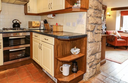 Amenities: Gas central heating. Electric oven, gas hob, microwave, fridge/freezer, washing machine and dishwasher. Smart TV with Sky and WiFi. Fuel and power inc. in rent. Bed linen and towels inc. in rent. Highchair, travel cot and stairgate available. Roadside parking for 1 car. Front patio with furniture and barbecue and small, rear courtyard with seating. Two well-behaved dogs welcome. Sorry, no smoking. Shop and pub 0.6 miles. Note: Although there is parking for one car outside the property, cars may struggle to get up the hill and can therefore park at the bottom of Gorsey Bank. Note: Guests that park up the hill, please be aware that you can only reverse back down. Note: The owner has provided a trolley to help guests get their luggage up the hill. Note: Due to the property's age there are steps throughout, please take care