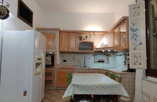 The holiday apartment built in 1999, was renovated in 2024 and is furnished in a rustic, functional and typical country style. The property is located in a residential area, in the town centre. Also due to the view over a panorama from the property and its quiet location the domicile is popular. This property is a historical and romantic accomodation. Available for use: garden furniture and courtyard.LocationCastelfiorentino. The landlord does not live in the house or on the property. 80 m2 Specialair conditioning, central heating (gas).Facilities: books, dvds or music for children, internet access (WLAN), iron, ironing board and washing machine. TV reception takes place via satellite.For your safety, the accommodation is equipped with CO2 detector and fire extinguisher. Dogsnot allowed. DistancesShopping 1400 m, restaurant 500 m, town center 600 m. For a relaxing holiday, a car is not necessary. The nearest public transport stop is 600 m away. Castelfiorentino: doctor 200 m, bank 400 m, airport 4,3 km, cinema 600 m, railway station 700 m and pharmacy 800 m. indoor swimming pool in Certaldo 9,8 km. thermal bath in Thermal baths of the Via Francigena Gambassi Terme 1100 m. Main road 500 m. Children's playground 500 m. DivisionHoliday apartment, 2 floors, 2 rooms (including 1 bedroom), 80 sqm, in total 2 beds. RoomThe entrance to your holiday apartment is located on the ground floor and leads over 5 steps directly into the porch with wardrobe, sitting area and doors to all rooms. Bedroom (17 sqm, not heatable) with 1 double bed (Kingsize) and Camera da letto matrimoniale with letto in iron battuto, pavimento in parquet and travi a vista sul soffitto. The camera is attached to the cabin armadio. Dispone di una finestra con vista città e campagna, in lontananza si scorgono the hill of Tuscany. All windows and external doors are secured with fly screens. Eat-in kitchen (19 sqm, walk-through room) with sitting area, TV, dining area (4 seats) and Complete kitchen, dishwasher, oven, microwave, kettle, fridge, freezer, two-seater sofa and TV. All windows and external doors are secured with fly screens. Kitchen (18 sqm, walk-through room) with TV, dining area (4 seats), electric stove (induction stove, 4 plates), oven, dishwasher, fridge (icebox), microwave, electric kettle and washing machine. All windows and external doors are secured with fly screens. Bathroom (10 sqm) with bathtub, washing machine, shower, 1 washbasin, WC, bidet, hairdryer, window and Towels provided included. All windows and external doors are secured with fly screens. Terms of lease and pricesIncluded in the priceair conditioning, parking place, electricity, gas, water, local tax (under 12 years), bed linen, hand towels, Wireless Internet access. Side costs-Costs on the spot:/Obligatory:final cleaning 50 € per object per stay. local tax by local tariff (if charged).Deposit:EUR 50,-/object.
