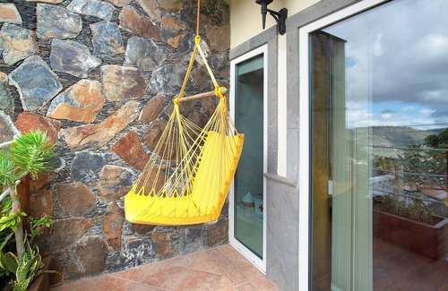 The apartment offers a private open terrace furnished for enjoying drinks with a view. Guests also have access to a shared 400 m² outdoor area, consisting of a garden, trees, hammocks and a barbecue.