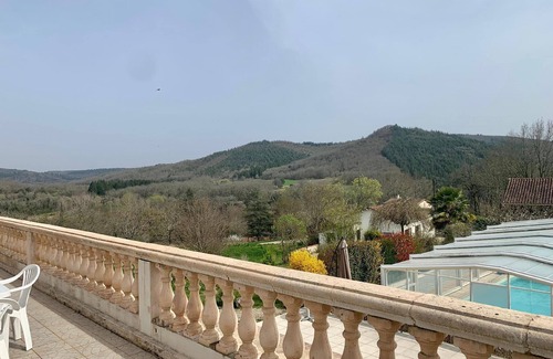 NID D'ÉTOILES (105 m² and a lovely terrace): 2 double bedrooms, 3 single beds on the mezzanine, a sofa bed in the living room, 1 bathroom and 1 WC. Duvets, pillows, pillow protectors and undersheets are provided. Toilet paper, tools and cleaning products are also provided.THE ACCOMMODATIONLocated in the commune of St Géry, near St Cirq Lapopie, the 5000 m² property has a shared swimming pool with shelter and heat pump, gardens and a playground. The gîte also has 2 satellite televisions (ASTRA) and WIFI (ORANGE fibre). The kitchen is well equipped and the living room or terrace are large and facilitate conviviality for meals.You have an iron and ironing board, washing machine, dishwasher, hoover and cleaning products.Central heating and a fan in each bedroom.Parking on site. Highlights: - Swimming pool under cover with heat pump with water treated all year round. The view from the terraces over the valley and fields is very beautiful - deer, rabbits, pheasants and other animals can often be seen in the fields - The terraces are furnished with garden furniture and a barbecue.