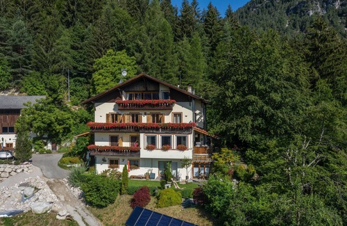 Between Merano (20 km) and Bolzano (30 km), Baumannhof is located in Gfrill/Tisens near Lana, in an idyllic setting ideal for a peaceful, rural holiday. The holiday apartment "Hasental" features rustic yet modern wooden furnishings and consists of a living room with a sofa bed and a single bed, a well-equipped kitchen, a bedroom, and a bathroom, offering space for 3 people. Amenities include Wi-Fi, TV, baby cot, children's bed, and high chair. Your private balcony invites you to relax in the fresh air when the weather is nice. You also have access to a shared garden with a barbecue. The spacious outdoor area includes a playground and a relaxation room for up to 15 people with a swimming pond, table tennis, table football, volleyball court, and sandbox. You can reach these facilities in 5 minutes on foot through the property's orchard. A bus stop is 200 m away, and the nearest bike rental is 10 km away (in Lana). The accommodation is an excellent starting point for hikes and mountain tours. The nearest supermarket and pharmacy are about 6.5 km away, a café is 200 m, a petrol station 5 km, and the nearest ski slope about 28 km away (Merano 2000). Parking is available on the property. Bed linen and towels are included. The tourist tax is charged from the age of 15. The apartment has a dishwasher. Further amenities: washing machine and dryer, CD player, toaster, blender, iron, baby cot and high chair on request. Breakfast is available on request for an extra charge. The apartment is bright, south-facing, and offers a fantastic view of the Dolomites mountains.