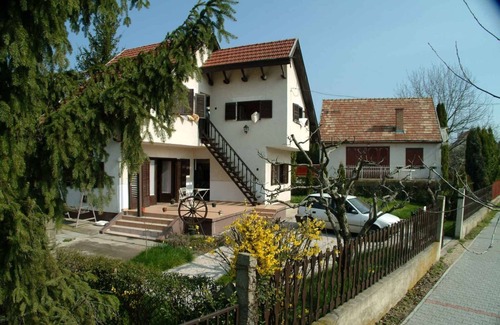 The holiday apartment is located in a detached single-family home and is furnished in a functional style. Also due to its quiet and sunny location the domicile is popular. Available for your exclusive use: barbecue facilities, terrace, garden furniture, campfire site and courtyard.LocationBalatonvilágos. The holiday apartement is located on a 120 sqm enclosed garden plot with meadow, flowers and shrubs, bordered by a fence. The landlord lives permanently in the house, but uses a seperate entrance. Access is via a side road (asphalted). Parking (for 2 cars) is available on the property. Specialair conditioning. TV reception takes place via satellite. Programs in German, English and various languages. Dogsallowed, EUR 3.00/pet per day. DistancesShopping 350 m, restaurant 300 m, town center 400 m. railway station in Balatonvilágos 400 m. Lookout tower 2 km. In summer: Balaton 500 m in Balatonvilágos (beach 500 m in Balatonvilágos featuring meadow). DivisionHoliday apartment, 1 floor, 2 rooms (including 2 bedrooms), 45 sqm, in total 5 beds (including 3 additional beds). RoomThe entrance to your holiday apartment is located upstairs and leads over an external staircase directly into the living & bedroom. Bedroom with 2 single beds. Cooking nook in the living & bedroom with electric stove (2 plates), fridge, microwave and coffee machine. Bathroom with bathtub with shower facility, 1 washbasin, WC and window. Bedroom. Terms of lease and pricesIncluded in the priceparking place, electricity, water, final cleaning, bed linen. Side costs-Costs on the spot:/Obligatory:local tax by local tariff.On request:air conditioning 5 € per object per day.Deposit:EUR 100,-/object