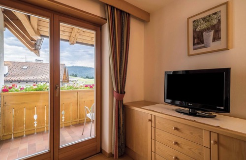 The "Mölten" holiday apartment is located on the first floor of our house and offers 35 m² of space for 2 to 4 people. You have a spacious living area with a double sofa bed and a separate double bedroom, which can be closed off with a sliding door. The kitchenette is fully equipped and allows for comfortable self-catering. Modern amenities include a flat-screen TV, free Wi-Fi, a safe, and a bathroom with shower, toilet, and hairdryer. Two balconies with sun loungers, a sunshade, and a dining table invite you to relax and offer a wonderful view of the South Tyrolean mountains.