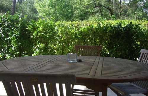The living room, dining room and kitchen create a spacious living area of around 27 m², which opens out onto the pine forest. The dining room has a 90x160 teak table with 6 chairs. There's a comfortable TV area (sofa armchair). A large bay window provides access to your covered terrace and private garden, which is equipped with teak garden furniture (table and 6 chairs), a barbecue and sun loungers. Each flat has been carefully equipped and decorated: LCD TV, reversible air conditioning, DVD player, Wi-Fi internet access, dishwasher, fridge, freezer, oven, 4-burner hob.