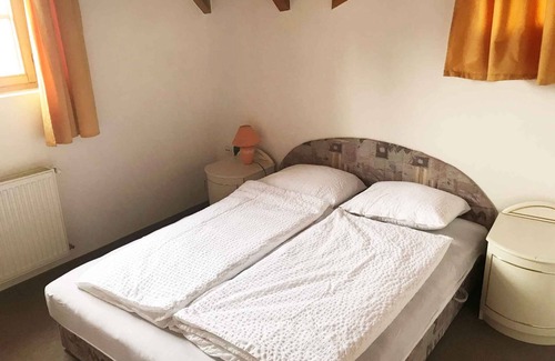 The holiday apartment is located in an apartment house and is functional furnished. The property is located in a busy environment, in a holiday home area, in the center. The domicile is also popular because of the sunny location. For common use are available: grill possibility, terrace, pavilion, garden furniture and court.LocationBalatonmáriafürdő. The holiday apartement is located on a 200 sqm, closed garden plot with meadow and flowers, limited by a fence. The landlord does not live in the house or on the property. Pet max. 10 kg allowed. The access goes via a side road (asphalted). Parking lot (for 1 car) on the property. SpecialFacilities: cot and internet access (WLAN). TV reception takes place via satellite. PoolOutdoor pool (diameter 3 m, depth 1 m, for common use). The pool facility can be used from mid of May to the end of September. Dogsallowed, EUR 5.00/pet per day. DistancesShopping opportunity 200 m, restaurant 5 m, town center 200 m.In summer: Balaton 300 m in Balatonmáriafürdő (beach 400 m in Balatonmáriafürdő with meadow). DivisionHoliday apartment, 2 floors, 4 rooms (including 3 bed rooms), 80 sqm, in total 8 beds (including 2 additional beds). Smoking is prohibited in the property. RoomThe entrance in your holiday apartment is located in the attic, is at ground level and leads directly in the vestibule. 2 bedrooms each with 1 double bed. Bedroom with 2 single beds. Living/bedroom with 2 extra beds on double sofa bed, TV, dining area and access to the terrace (garden furniture, 1 table, 6 chairs). Cooking nook in the living room / bedroom with dining area (8 seats), electric stove (2 plates), fridge (120 l, icebox), microwave and coffee machine. Bathroom with bathtub with shower facility, 1 sink, WC, bidet and window. Bathroom with shower, 1 sink, WC and window. Terms of lease and pricesIncluded in the priceOutdoor pool, internet access, parking place, electricity, water, heating, final cleaning, bed linen, pool, Wireless Internet access. Side costs-Additionally(Payable when booking)/baby cot – please order at booking on request per bed per week. additonal fee for short-term stays (less than 2 nights) obligatory 40% per booking per stay.Costs on the spot:/Obligatory:local tax by local tariff.Deposit:No deposit.