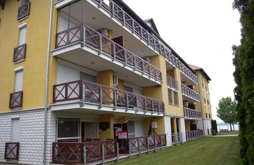 The holiday apartment is located in an apartment house built in 2009 and is furnished in a modern style. The property is located at the end of a cul-de-sac road, in a holiday home area, on the outskirts. Also due to the view over the lake from the property and its quiet and sunny location the domicile is popular. Available for shared use: sunbathing lawn and sun lounger.LocationBalatonöszöd. The holiday apartement is located on a plot with meadow and shrubs. The landlord does not live in the house or on the property. Access is via a side road (asphalted). Parking (for 1 car) is available on the property and in a parking lot in the village (distance 50 m). Specialair conditioning, central heating (gas), underfloor heating.Facilities: children's toys, baby cot, high chair, internet access (WLAN), iron and washing machine. TV reception takes place via electric wire. TV channels only in local language. Vidanet Digital family packageFor your safety, the accommodation is equipped with smoke detector. Leisure2 bicycles and darts. Dogsnot allowed. DistancesShopping 2,5 km, restaurant 2,5 km, town center 2,5 km. thermal bath, indoor swimming pool each 15 km. doctor in Balatonfoldvar 6 km. discotheque in Balatonszarszo 2,5 km. Railway line 150 m. Children's playground 300 m. In summer: Balaton 300 m in Balatonöszöd (beach 300 m in Balatonöszöd featuring meadow). fishing in Balatonöszöd 300 m. horse riding in Szantódpuszta 15 km. DivisionHoliday apartment, 1 floor, 2 rooms (including 1 bedroom), 40 sqm, in total 4 beds. RoomThe entrance to your holiday apartment is covered, at ground level and wheelchair accessible and leads over the terrace directly into the vestibule with wardrobe and doors to all rooms. American kitchen with (4 seats), electric stove (ceramic hob, 4 plates), oven, extractor hood, dishwasher, fridge (icebox), microwave, coffee machine, toaster and electric kettle. Bathroom with washing machine, dryer, shower, 1 washbasin, WC, bidet, hairdryer and window. Bedroom with 1 double bed. Living/bedroom with 1 double bed, 1 additional bed on mattress, 1 cot, sitting area, TV, video, DVD player, dining area (4 seats) and access to the terrace (8 sqm, covered, garden furniture, 1 table, 5 chairs, 2 sunbeds, parasol). Terms of lease and pricesIncluded in the pricebabycot, internet access, bicycle, air conditioning, parking place, electricity, water, heating, bed linen, sunloungers at the beach, Baby set including cot, high chair, small bathtub, Wireless Internet access, baby cot (please order at booking) (under 12 years). Side costs-Additionally(Payable when booking)/final cleaning obligatory 73 € per object per stay. local tax.Costs on the spot:/Obligatory:bathing towels to bring along.Deposit:EUR 100,-/object