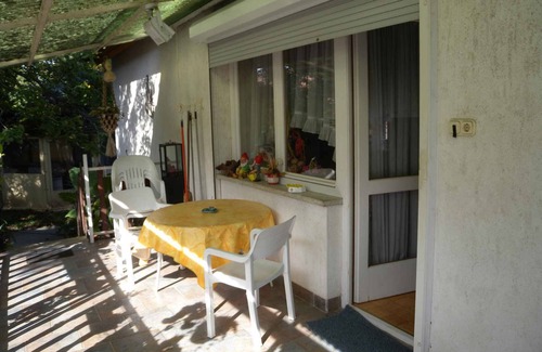 The holiday apartment Also due to its quiet location the domicile is popular. Available for shared use: barbecue facilities, pavilion, garden furniture and Hollywood swing. Sailing excursions and guided fishing tour on request at Bagenkop surcharge.LocationBalatonberény. The holiday apartement is located on a 700 sqm enclosed garden plot with meadow, flowers and shrubs. The landlord does not live in the house or on the property. The house also has BAL BER 099 is (4 people). Access is via a side road (asphalted). Parking is available on the property. SpecialFacilities: internet access (WLAN). TV reception takes place via electric wire, satellite. Dogsallowed, EUR 4.00/pet per day. DistancesShopping 100 m, restaurant 200 m, town center 500 m. Transfer possible by arrangement with the landlord. In summer: Balaton 500 m in Balatonberény. Nudist beach 700 m. Horse riding and carriage ride 1km. DivisionHoliday apartment, 1 floor, 3 rooms (including 2 bedrooms), 110 sqm, in total 4 beds. Room Living room with sitting area, TV and access to the terrace. 2 bedrooms each with 1 double bed. Kitchen with gas stove, oven, extractor hood, dishwasher, fridge (icebox), microwave, coffee machine, toaster and electric kettle. Bathroom with shower, 1 washbasin, WC and window. Bathroom with bathtub with shower facility, 1 washbasin, WC, bidet and window. Terms of lease and pricesIncluded in the priceinternet access, parking place, electricity, water, final cleaning, bed linen, Wireless Internet access. Side costs-Costs on the spot:/Obligatory:local tax by local tariff.Deposit:EUR 100,-/object