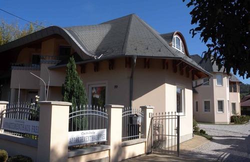 The holiday apartment is located in an apartment house and is modern furnished. The property is located in a holiday home area. The domicile is also popular because of the quiet and sunny location. For use are available: grill possibility and pavilion. Balcony. The family guesthouse offers a hair salon with ladies and gents, bike and sailboat rental. At the request of riders and anglers organization programs (with a rowing boat).LocationGyenesdiás. The holiday apartement is located on a 600 sqm garden plot with meadow. The landlord lives permanently in the house, but uses a seperate entrance. A total of 4 studios and 4 two-room apartment. The access goes via a side road. Parking lot (for 7 cars) on the property. SpecialFacilities: internet access (WLAN). TV reception takes place via electric wire.For your safety, the accommodation is equipped with smoke detector. Leisure1 bicycle. Dogsallowed, EUR 7.00/pet per day. DistancesShopping opportunity 500 m, restaurant 300 m, town center 300 m. Gyenesdiás: discotheque 200 m and pharmacy 500 m. Railway line 300 m. Newsstand and massage 500 m. Shopping center Liget Plaza and Mc Donald's 1500 m. Keszthely 2 km, Hévíz 7 km.In summer: Balaton 300 m in Gyenesdiás (beach 500 m in Gyenesdiás). tennis in Gyenesdiás 200 m. Giant slide on the beach. Bike path nearby. DivisionHoliday apartment, 1 floor, 2 rooms (including 2 bed rooms), 70 sqm, in total 6 beds (including 2 additional beds). Room Bedroom with 2 single beds, 1 additional bed on sleeping accommodation and the extra bed is small and only suitable for children between the ages of 4 and 11. Bedroom with 1 double bed (Kingsize), 1 additional bed on sleeping accommodation, TV and the extra bed is small and only suitable for children between the ages of 4 and 11. Kitchen with electric stove (ceramic hob), fridge, coffee machine and electric kettle. Bathroom with shower, WC and hairdryer. Terms of lease and pricesIncluded in the priceinternet access, parking place, electricity, water, final cleaning, bed linen, hand towels, Wireless Internet access. Side costs-Costs on the spot:/Obligatory:local tax by local tariff.On request: For a fee: bicycle.Deposit:EUR 200,-/object.