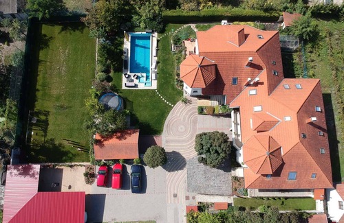 The holiday apartment is located in a semi-detached house built in 1997 and is furnished in a modern style. The property is located in the town centre. Also due to its quiet and sunny location the domicile is popular. This property is a family-friendly accomodation. Available for shared use: sunbathing lawn, parasol, sun lounger, children's playground, swing, sandpit, garden shower, barbecue facilities, terrace, pavilion, garden furniture and courtyard. Swing, bowling. After consultation with the landlord, there is the opportunity to experience a rally test test drive with 15% discount. Baby cots and high chairs are available on request.LocationSiofok, 150 m above sea level. The holiday apartement is located on a 1800 sqm enclosed garden plot with meadow, flowers, shrubs and trees, bordered by a fence. The landlord lives permanently in the house, but uses a seperate entrance. Apartment BAL SIO 400 (6 people) and BAL SIO 401 (6 people) are in the same house. Access is via a side road (asphalted). Parking (for 2 cars) is available on the property. Specialair conditioning, electric heating.Facilities: children's toys, baby cot, high chair, internet access (WLAN), safe, iron, ironing board, washing machine and dryer. TV reception takes place via electric wire.For your safety, the accommodation is equipped with CO2 detector, smoke detector and fire extinguisher.Hygiene measures: final cleaning with sanitisation. PoolAll pools are available for shared use. Outdoor pool (usable from mid May to mid September, 4 m x 8 m, depth 1,2 m). WellnessSauna. Leisure3 bicycles, fitness equipment, table tennis, table football, billiards and darts. Dogsnot allowed. DistancesShopping 250 m, restaurant 250 m, town center 1000 m. bank in 1000 m. discotheque, cinema each 1500 m. doctor in 2 km. thermal bath, indoor swimming pool each 4,5 km. airport in 6 km. pharmacy in 800 m. railway station in 900 m. Railway line 900 m. Main road 600 m. In summer: Balaton 1500 m in Siofok. DivisionHoliday apartment, 1 floor, 4 rooms (including 3 bedrooms), 130 sqm, in total 6 beds. RoomThe entrance to your holiday apartment is located on the 1st floor