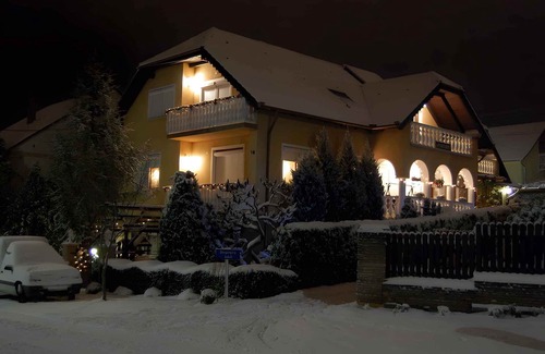 The holiday apartment is located in an apartment house built in 1994, was renovated in 2018 and is furnished in a modern style. The property is located in the town centre. Also due to its quiet and sunny location the domicile is popular. This property is a family-friendly accomodation. Available for shared use: sunbathing lawn, parasol, sun lounger, children's playground, swing, sandpit, barbecue facilities, terrace, pavilion, garden furniture, Hollywood swing, campfire site and courtyard.LocationHévíz, 160 m above sea level. The holiday apartement is located on a 720 sqm enclosed garden plot with meadow, flowers, shrubs and trees, bordered by a fence and a hedce. The landlord lives permanently in the house, but uses a seperate entrance. Exotic plants Access is via a side road (asphalted, length 30 m). Parking (for 2 cars) is available in a garage and in a carport and on the property. Parking in a closed yard Specialair conditioning, central heating (gas), underfloor heating. In summer: fan and air conditioningFacilities: children's toys, baby cot, high chair, internet access (WLAN), iron and dryer. TV reception takes place via satellite. There is no broadcast in Hungarian The accommodation has hypoallergenic pillows.For your safety, the accommodation is equipped with CO2 detector, smoke detector and first aid kid.Hygiene measures: disinfectant and final cleaning with sanitisation. Leisure2 bicycles. Dogsnot allowed. DistancesShopping 200 m (200 m in winter), restaurant 300 m, town center 500 m. Hévíz: cinema 1200 m, thermal bath 1400 m, railway station 1500 m, bank 400 m, sauna, pharmacy each 500 m. doctor 600 m. Keszthely: indoor swimming pool 7 km and discotheque 7,5 km. airport in Sármellék 14 km. Railway line 7 km. Main road 400 m. Children's playground 300 m. In summer: Hévíz thermal baths 1400 m in Hévíz (beach 7,5 km in Keszthely featuring meadow, sand and gravel). horse riding in Cserszegtomaj 4 km. dog beach in Gyenesdiás 11 km. Hévíz: golf 1500 m, tennis 500 m and mini golf 600 m. fishing, water sports, boat rental, boat launch each 7,5 km in Keszthely. diving in Tapolca 25 km. Homokos beach Gyenesdiáson 11 km. Kisvasút 200 m. Balaton 7.5 km. In winter: ice skating in Hévíz 1200 m. DivisionHoliday apartment, 1 floor, 2 rooms (including 1 bedroom), 34 sqm, in total 2 beds. RoomThe entrance to your holiday apartment is located on the mezzanine floor, is at ground level and wheelchair accessible and leads over the 8 sqm terrace directly into the living room with doors to all rooms. Living room (10 sqm) with sitting area, TV, radio, CD player and access to the terrace (covered, garden furniture, 1 table, 2 chairs). Bedroom (12 sqm) with 1 double bed. Kitchen (6 sqm) with dining area (2 seats), electric stove (ceramic hob, 2 plates), fridge (120 l, icebox), microwave, coffee machine, toaster and electric kettle. Bathroom (6 sqm) with dryer, shower, 1 washbasin, WC, hairdryer and window. Terms of lease and pricesIncluded in the pricebabycot, parking place, electricity, gas, water, final cleaning, bed linen, Wireless Internet access. Side costs-Costs on the spot:/Obligatory:local tax by local tariff.On request:bicycle 4 € per bicycle per day. garage 2 € per car per day. air conditioning 2 € per object per day.Deposit:EUR 50,-/object.