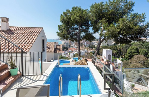 Have a wonderful holiday in this modern townhouse, where you can enjoy the views of Fuengirola and the Mediterranean, take a dip in your private splash pool or go down to the communal infinity pool.