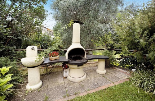 The property gives access to a shared outdoor area which includes a garden next to the farmhouse restaurant, and a barbecue. Enjoy relaxing sea and mountain views while preparing a healthy meal for your family! In the garden there is a laundry room with washing machine.