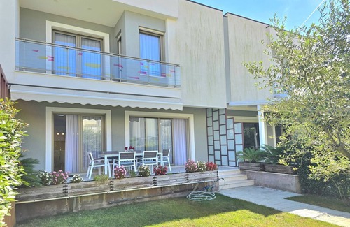 holiday home – inviting and spacious, this three-bedroom retreat welcomes up to seven guests with a practical and comfortable layout. It includes two queen-size beds, two single beds, and a sofa bed in the living area. The property is non-smoking and strictly pet-free, ensuring a fresh and family-friendly environment. A private garden with outdoor furniture offers a perfect place to relax, while free Wi-Fi, air conditioning in each room, towels, bed linen, heating, and parking for two vehicles are all included. Access to the Perla Resort swimming pool is available nearby for an additional fee. Set just 250 metres from the sandy shores of Gjiri Lalzit, this holiday home enjoys an excellent coastal location in a tranquil yet accessible area. Within walking distance, guests will find popular beaches such as Il Gambero and Ibiza, along with a wide selection of restaurants, cafés, and local shops. A nearby supermarket provides everyday essentials just a few minutes away. The property is conveniently located for those arriving by car and approximately 38 kilometres from Tirana International Airport, ensuring smooth connections for arriving guests. Inside, guests will find a fully equipped American-style kitchen ideal for self-catering stays. It features a glass-ceramic hotplate, oven, dishwasher, fridge, freezer, coffee machine, and all essential kitchenware. Two modern bathrooms with walk-in showers offer added comfort and privacy. Additional amenities include a washing machine, clothes drying rack, iron, and hot water supply. A flat-screen TV enhances the living area, and the shaded outdoor dining space allows guests to enjoy meals al fresco.