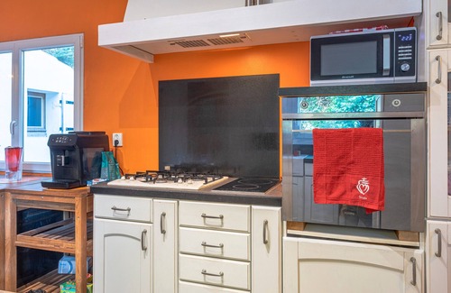 Just a short walk from the beach, the holiday home Maison 250m plage - grand jardin with step-free interior is located in L'Île-d'Yeu. The 100 m² property consists of a living room, a well-equipped kitchen, 3 bedrooms and 1 bathroom as well as an additional toilet and can therefore accommodate 6 people. Additional amenities include high-speed Wi-Fi (suitable for video calls) with a dedicated workspace for home office, a TV as well as a washing machine. A baby cot and a high chair are also available. This accommodation does not offer: air conditioning. This vacation home offers a private outdoor space with a garden and barbecue facilities.