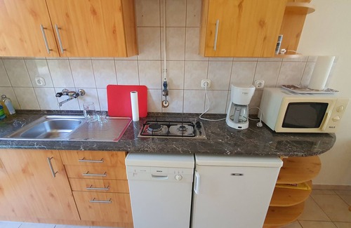 The holiday home is a semi-detached house and furnished in a modern style. The property is located in a holiday home settlement. Also due to its quiet and sunny location the domicile is popular. Available for shared use: parasol, sun lounger, barbecue facilities, terrace and garden furniture. Brick barbecue. Internet access with mobile stick.LocationSzántód. The holiday home is located on a enclosed garden plot with meadow, flowers and shrubs, bordered by a fence. The landlord does not live in the house or on the property. Particularly suitable for families. Not available for youth groups. There is another apartment for 6 people available in the house BAL SZN 005.