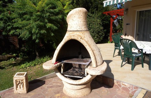 The detached holiday home was renovated in 2020 and is furnished in a modern style. The property is located in a residential area, in the town centre. Also due to the view on the garden from the property and its quiet and sunny location the domicile is popular. Available for your exclusive use: sunbathing lawn, parasol, sun lounger, children's playground, swing, sandpit, garden shower, barbecue facilities, terrace, pavilion, garden furniture and campfire site.LocationBalatonszárszó. The holiday home is located on a 1400 sqm enclosed garden plot with meadow, flowers, shrubs and trees, bordered by a fence. The landlord lives in a separate building on the property. The property is only available for families. Access is via a side road (asphalted). Parking (for 3 cars) is available on the property. Electric gate with remote control. Specialair conditioning, central heating (gas). Air conditioning: upstairs in the living room, also downstairs in 1 bedroom. Mosquito net, electric shutters on the ground floor.Facilities: baby cot, high chair, internet access (WLAN), safe and washing machine. TV reception takes place via electric wire. LCD TV. Broadcasts in German.For your safety, the accommodation is equipped with smoke detector. PoolAll pools are available for exclusive use. Outdoor pool (usable from early June to end of August, 3.5 m x 6.5 m, depth 1.5 m). WellnessSauna. Dogsnot allowed. DistancesShopping 400 m, restaurant 400 m, town center 700 m. railway station in Balatonszárszó 700 m. In summer: Balaton 800 m in Balatonszárszó. Balatonszárszó: fishing 1000 m, mini golf 2,5 km, horse riding 3 km and tennis 900 m. DivisionHoliday home, 2 floors, 6 rooms (including 4 bedrooms), 170 sqm, in total 9 beds (including 1 additional bed). RoomThe entrance to your holiday home is located on the ground floor, is wheelchair accessible and leads directly into the living room. Upper floor accessible via staircase (internal staircase).Ground floor: Living room (60 sqm) with sitting area, TV, fireplace, DVD player, dining area (8 seats), access to the terrace (garden furniture, parasol) and fireplace. 2 bedrooms each (16 sqm) with 1 double bed. American kitchen in the living room (12 sqm) with electric stove (ceramic hob, 4 plates), oven, extractor hood, dishwasher, fridge (160 l, icebox), microwave, coffee machine, toaster and electric kettle. Bathroom (4 sqm) with washing machine, shower, 1 washbasin and window. Separate toilet with 1 washbasin and WC. Upper floor: Living room with 1 additional bed on couch/sofa, sitting area, TV, dining area (4 seats) and access to the balcony (5 sqm, covered, garden furniture, 1 table, 2 chairs). Bedroom with 2 single beds. Bedroom with 1 double bed. Cooking nook in the living room (3 sqm) with electric stove (3 plates), oven, fridge (140 l, icebox), microwave, coffee machine and toaster. Bathroom (6 sqm) with bathtub with shower facility, 1 washbasin, WC and window. Terms of lease and pricesIncluded in the priceOutdoor pool, babycot, internet access, baby cot (under 2 years), children chair, parking place, electricity, gas, water, bed linen, pool, sunloungers, Wireless Internet access. Side costs-Costs on the spot:/Obligatory:final cleaning 200 € per object per stay. local tax by local tariff.On request:air conditioning 140 € per object per week. sauna 40 € all inclusive per hour. Infra Sauna 15 € all inclusive per hour.Deposit:EUR 200,-/object.