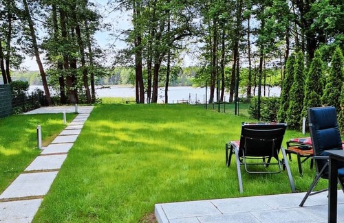 High-quality equipped vacation home for up to 4 people with a spacious property with enough space for bicycles, paddle boats, SUPs and sports equipment. Sun loungers for relaxing hours, barbecues with friends or at the fire bowl area not far from Lake Wentow with a direct view of the lake. The open-plan living/dining area and the kitchen are decorated in a maritime style. The bathroom is equipped with a walk-in shower. The towels are cornflower blue. The two bedrooms are furnished with double beds and are located on the 1st floor of the vacation home. There is a Siemens washing machine and dryer in an outbuilding. The wood-burning stove invites you to cozy hours.