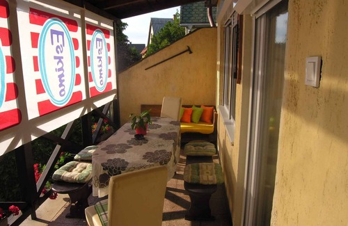 The detached holiday home is furnished in a rustic style. The property is located in the town centre. Also due to its quiet and sunny location the domicile is popular. Available for your exclusive use: sunbathing lawn, sun lounger, barbecue facilities, garden furniture, Hollywood swing and courtyard. Large garden with a small football field and basketball back wallLocationBalatonlelle. The holiday home is located on a enclosed garden plot, bordered by a fence. The landlord lives permanently in the house, but uses a seperate entrance. Access is via a side road. Parking is available on the property and in a parking lot in the village (distance 3 m). SpecialFacilities: internet access (WLAN) and washing machine. TV reception takes place via satellite. The accommodation has hypoallergenic pillows.For your safety, the accommodation is equipped with smoke detector. Leisurewith its own football field and basketball back wall Dogsnot allowed. DistancesShopping 500 m, restaurant 150 m, town center 500 m. In summer: Balaton 600 m in Balatonlelle (beach 600 m in Balatonlelle). DivisionHoliday home, 2 floors, 5 rooms (including 4 bedrooms), 130 sqm, in total 8 beds. RoomThe entrance to your holiday home is located on the mezzanine floor and leads over 8 steps directly into the vestibule. higher ground floorHigher ground floor: Living room with sitting area, TV and dining area (6 seats). Bedroom with 1 double bed and access to the terrace (covered, garden furniture, 1 table, 2 chairs). Bedroom with 1 double bed and Minden hálószobába légkondicionáló lett beépítve, kérésre felárért igényelhető. Kitchen with gas stove (4 flames), oven, dishwasher, fridge (icebox), microwave, coffee machine, toaster and electric kettle. Bathroom with shower, 1 washbasin and WC. Bathroom with bathtub, washing machine, 1 washbasin and bidet. Separate toilet with 1 washbasin and WC. 1st floor: Bedroom with 1 double bed and 1 additional bed on folding bed (only suitable under the year of 10). Bedroom with 1 double bed and access to the balcony (garden furniture). Terms of lease and pricesIncluded in the priceinternet access, parking place, electricity, water, final cleaning, bed linen, sunloungers, Wireless Internet access. Side costs-Costs on the spot:/Obligatory:local tax by local tariff.On request:Air conditioning - please order at booking 100 € per object per week.Deposit:EUR 150,-/object