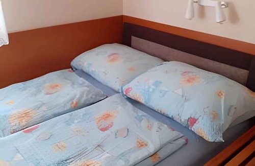 The holiday home, built in 1980 and renovated in 2020 is a semi-detached house and modern furnished. The property is located in a holiday complex, on the outskirts. The domicile is also popular because of the quiet and sunny location. For use are available: sunbathing area, sun lounger, grill possibility, terrace, pavilion, garden furniture, hollywood swing and fire place.LocationSiófok. The holiday home is located in a holiday complex, on a 300 sqm, closed garden plot with meadow and trees, limited by a fence. The access goes via a side road (asphalted). Parking lot (for 1 car) on the property and the street in front of the house. Specialair conditioner. TV reception takes place via electric wire. Dogsnot allowed. DistancesShopping opportunity 400 m, restaurant 400 m. Siófok: bank 2,6 km and discotheque, cinema, pharmacy each 7 km. railway station in Siófok Sóstó 1200 m. Main road 600 m.In summer: Lake Balaton 400 m in Siófok Sóstó. fishing in Siófok Sóstó 400 m. DivisionHoliday home, 1 floor, 4 rooms (including 3 bed rooms), 50 sqm, in total 6 beds. Smoking is prohibited in the property. RoomThe entrance in your holiday home is located on the ground floor, is at ground level and leads directly in the living room. Living room. 3 bedrooms each with 1 double bed. Kitchen with gas stove (4 flames), fridge (180 l, icebox), microwave, toaster and electric kettle. Bathroom with shower, 1 sink and WC. Terms of lease and pricesIncluded in the priceparking place, electricity, gas, water, final cleaning, bed linen, sunloungers. Side costs-Costs on the spot:/Obligatory:air conditioning 7 € per object per day. local tax by local tariff.On request:late arrival 20 € per object per stay.Deposit:EUR 100,-/object