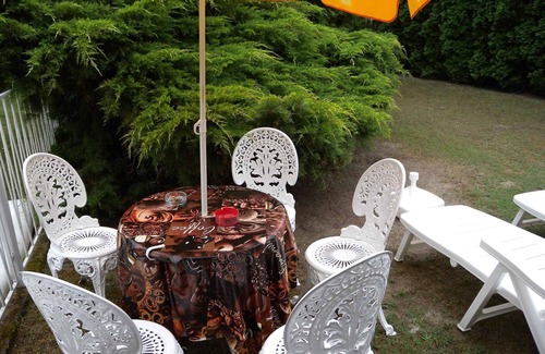 The holiday home is a semi-detached house and furnished in a functional style. Also due to its quiet and sunny location the domicile is popular. Available for your exclusive use: sunbathing lawn, parasol, sun lounger, barbecue facilities, terrace and garden furniture. 4 sun loungers. Electric cars are not allowed to be charged.LocationSiofok. The holiday home is located on a 300 sqm enclosed garden plot with meadow, bordered by a fence. The landlord does not live in the house or on the property. You are not allowed to charge an electric car in the house. Access is via a side road. Parking (for 2 cars) is available on the property. SpecialThere is no heating. TV reception takes place via satellite. Dogsallowed, EUR 5.00/pet per day. DistancesShopping 2 km, restaurant 400 m, town center 3 km. In summer: Balaton 400 m in Siofok. DivisionHoliday home, 2 floors, 3 rooms (including 2 bedrooms), 56 sqm, in total 4 beds. RoomGround floor: Living room with sitting area, dining area (6 seats) and access to the terrace (13 sqm). Kitchen with gas stove (4 flames), fridge (icebox), microwave, coffee machine and toaster. Bathroom with bathtub. Separate toilet with WC. Upper floor: 2 bedrooms each with 1 double bed. Terms of lease and pricesIncluded in the priceparking place, electricity, gas, water, final cleaning, bed linen. Side costs-Costs on the spot:/Obligatory:local tax by local tariff.Deposit:EUR 150,-/object