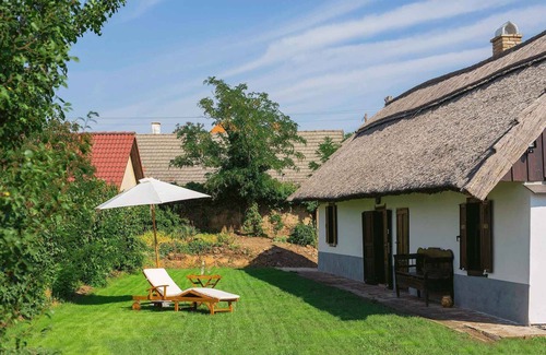 The detached holiday home built in 1890, was renovated in 2018 and is furnished in a modern and typical country style. The property is located in a residential area, in the town centre. Also due to the view over a panorama from the property and its quiet and sunny location the domicile is popular. Available for your exclusive use: parasol, sun lounger, children's playground, swing, sandpit, barbecue facilities, pavilion, garden furniture and courtyard. Charcoal and wood are provided.LocationSukoró. The holiday home is located on a 1200 sqm enclosed garden plot with meadow, shrubs and trees, bordered by a fence. The landlord does not live in the house or on the property. Baby and children's toys, baby tubs are available. Air-conditioned mosquito nets on the windows. Dishwasher, oven, hob, toaster, coffee maker, washing machine, basic food, spices. Barbecue in the garden. The property is in a very quiet location. Access is via a side road (asphalted). Parking (for 2 cars) is available on the property. Specialair conditioning, electric heating.Facilities: children's toys, baby cot, high chair, internet access (WLAN), iron, washing machine and dryer. PoolAll pools are available for exclusive use. Children's pool (diameter 1,5 m, depth 0,3 m) and paddling pool. Leisurefitness equipment. Dogsallowed, EUR 10.00/pet per day. DistancesShopping 350 m, restaurant 150 m, town center 250 m. airport in Budapest 70 km. bank in Gardony 9,5 km. Velence: doctor 4,7 km, railway station 5,5 km, thermal bath, sauna each 6 km. pharmacy 7 km. Main road 450 m. Children's playground 100 m. In summer: Bathing possibility 1000 m (beach 3,4 km in Velence featuring sand). DivisionHoliday home, 1 floor, 2 rooms (including 1 bedroom), 60 sqm, in total 6 beds (including 2 additional beds), on request additionally 1 child up to 2 years in a baby cot. RoomThe entrance to your holiday home is located on the ground floor, is covered and at ground level and leads directly into the vestibule with doors to all rooms. Bedroom (15 sqm) with 1 double bed and 2 single beds. Living/bedroom (25 sqm) with 1 double bed, 1 additional bed on folding bed and dining area (6 seats). Kitchen (15 sqm) with electric stove (ceramic hob, 2 plates), oven, extractor hood, dishwasher, fridge (180 l, icebox), microwave, coffee machine, toaster, electric kettle and washing machine. Bathroom (4 sqm) with shower, 1 washbasin, WC and hairdryer. Terms of lease and pricesIncluded in the pricebabycot, internet access, baby cot, firewood, iron, high chair, air conditioning, parking place, washing machine, electricity, water, final cleaning, bed linen, hand towels, bathing towels, barbecue, sunloungers, Wireless Internet access. Side costs-Costs on the spot:/Obligatory:local tax by local tariff.Deposit:No deposit.